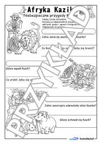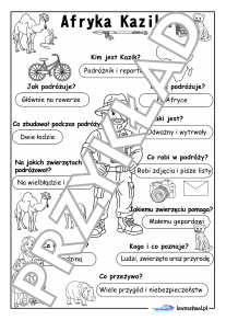 Przykładowe karty pracy w pdf do lektury "Afryka Kazika" Łukasza Wierzbickiego: