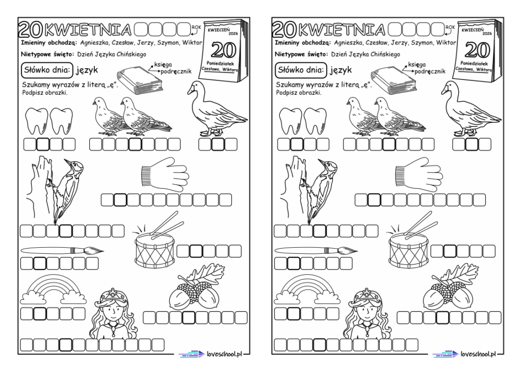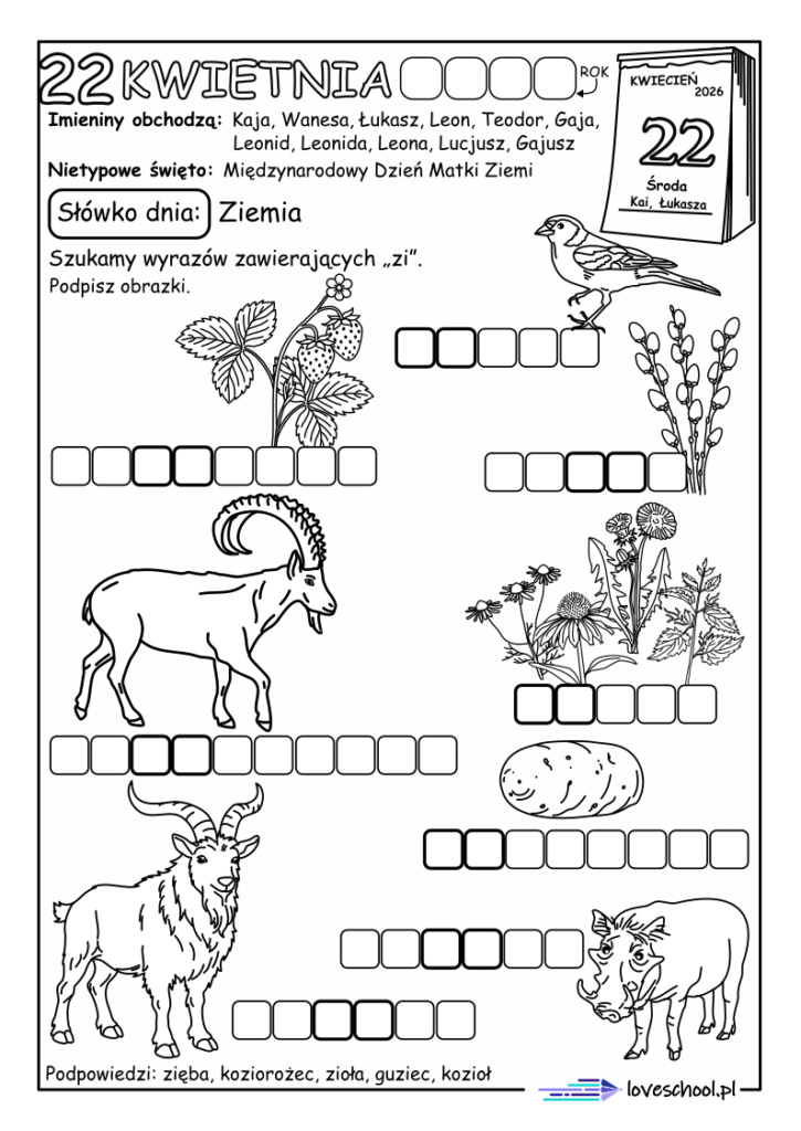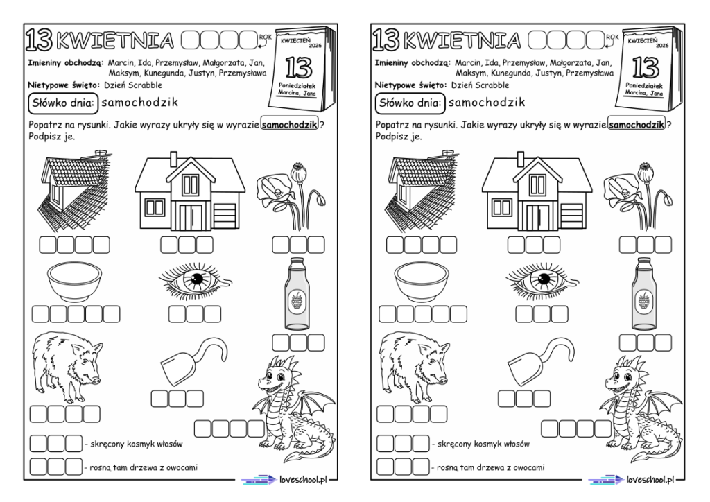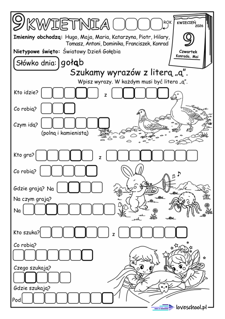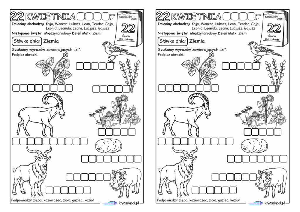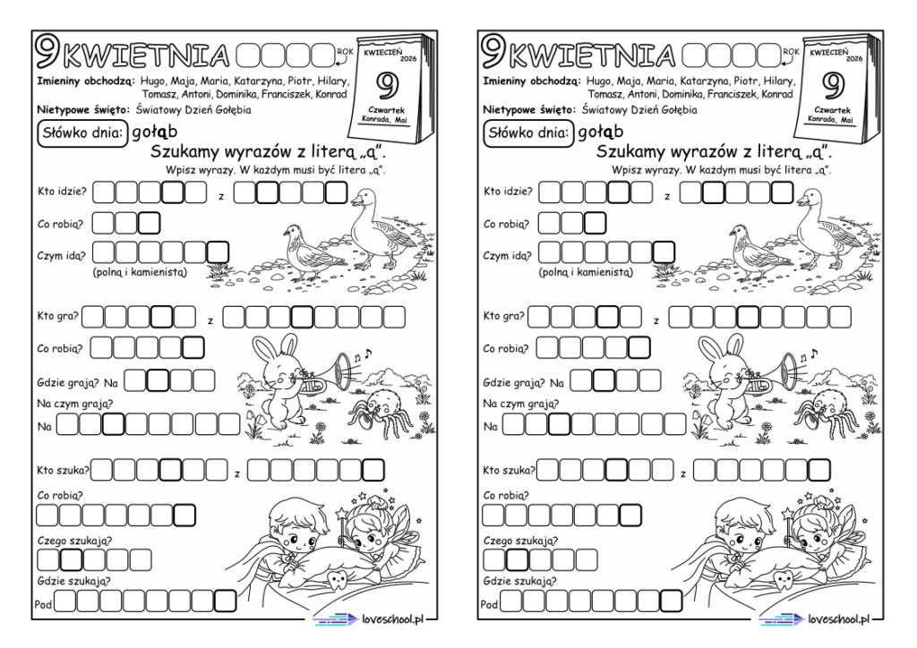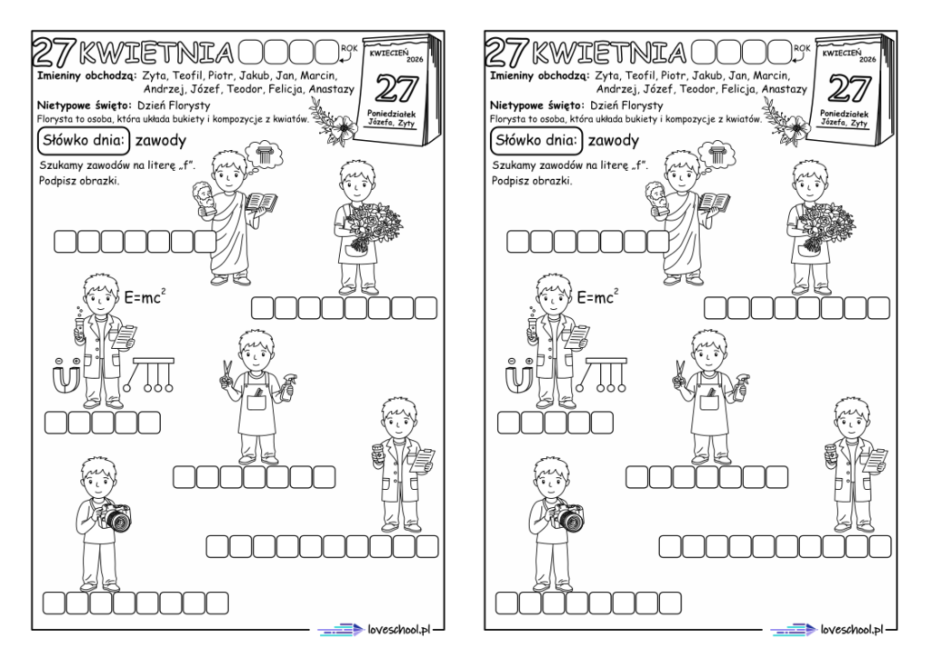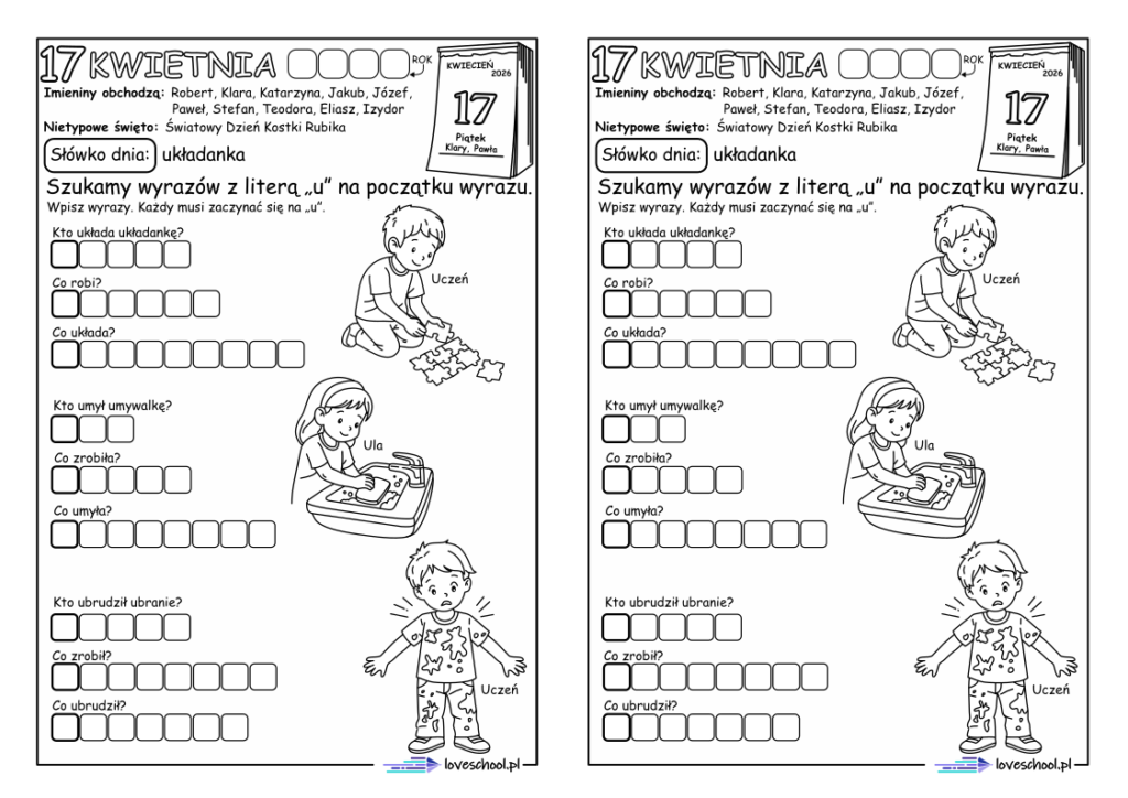 Przykładowe karty pracy w zestawie: