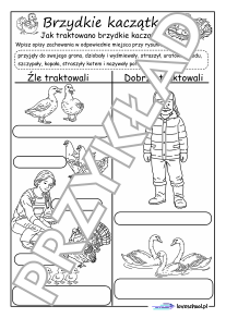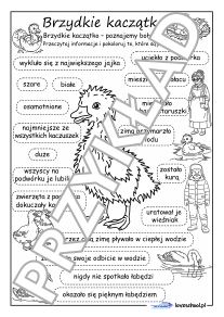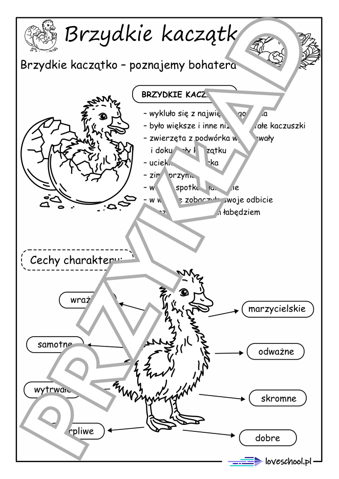 Przykładowe karty pracy do lektury "Brzydkie kaczątko":